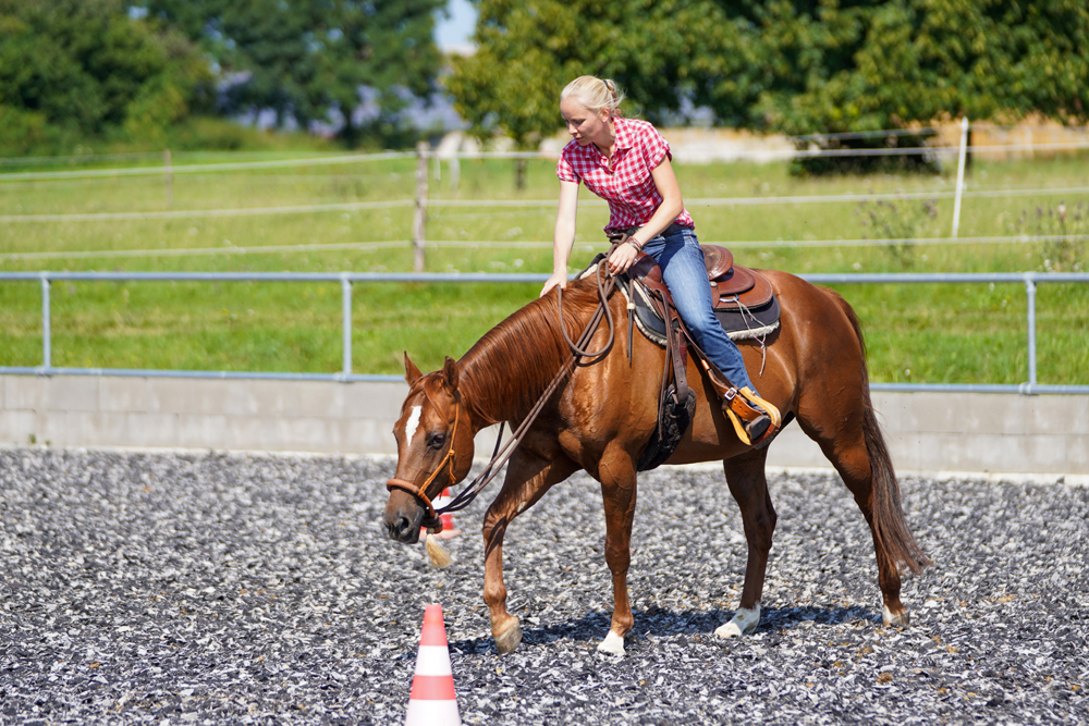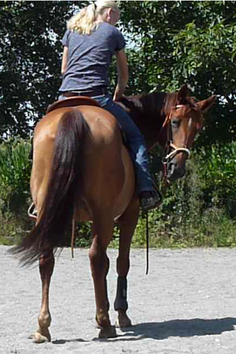 | (2016) Eine polnische Halbblutstute bei der Umstellung auf Western; im Sidepull | Ada auf dem Ride of America 2014 in der AQHA