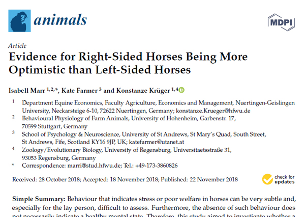 In der aktuellen Studie “Evidence for Right-Sided Horses Being More