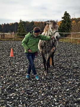 Isabell unterstützt mich inzwischen seit einigen Monaten mit meinem Buben. Nach dem Kauf von Cheesecake (Wallach, 5 Jahre) hatte ich durch seine sensible Art und dem fehlenden Vertrauen zum Menschen erhebliche Probleme. Auch mein Vertrauen in ihn wurde immer weniger. Durch verschiedene Einheiten (Führtraining, Longieren, Clickern und Reiten) konnten wir inzwischen Fortschritte erzielen und das Vertrauen wieder etwas aufbauen. Mir gefällt an ihrem Unterricht, dass sie durch nichts aus der Ruhe zu bringen ist, sie sowohl auf den Reiter, als auch das Pferd eingeht, und individuelle Lösungsansätze anbietet. Es liegt noch ein langer Weg vor uns, aber ich bin mir sicher, dass wir mit Isabell weitere Schritte in die richtige Richtung gehen. Auf dem Bild seht ihr Cheesecake und mich bei unserer ersten Ansätzen zum Beine überkreuzen (die Fragezeichen sind ihm förmlich anzusehen :D) Catharina |